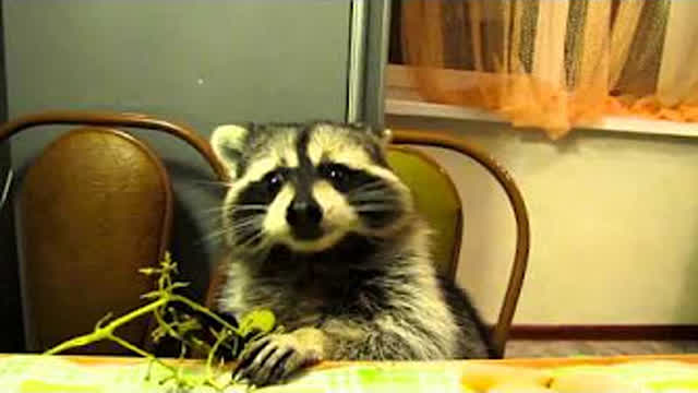 Imported from Youtube Original Description: Nov 21, 2013 A pet raccoon takes a seat at the kitchen table and calmly eats some fresh grapes using... |